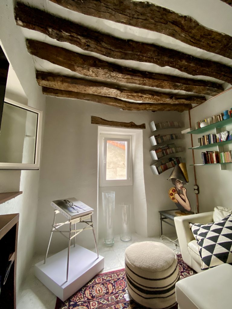Sie ist zu erreichen durch eine Wendetreppe die auch zu den oberen Geschoss führt